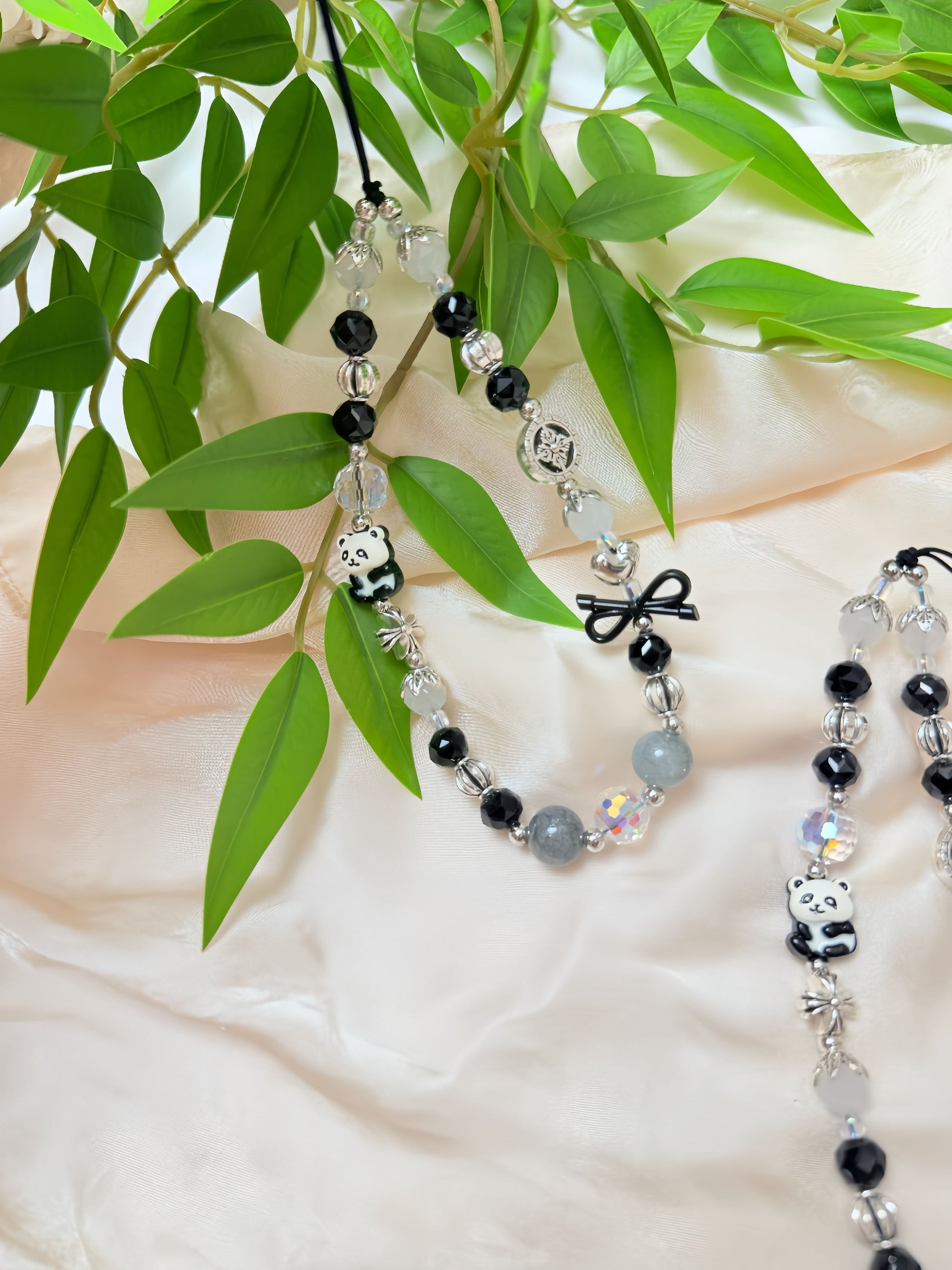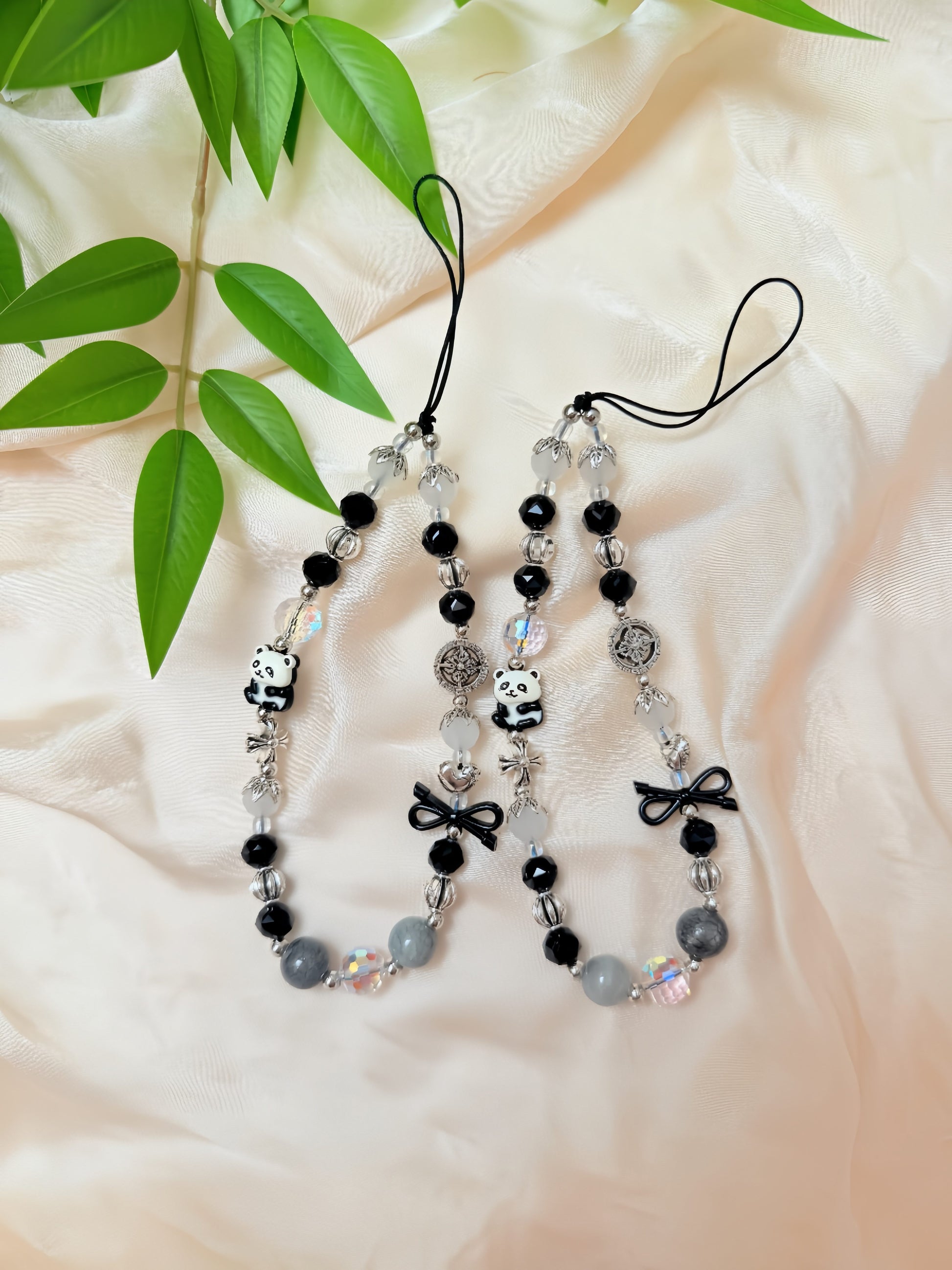 This phone charm features an adorable panda charm as the centerpiece, blends elegance with playfulness, making it the perfect black phone charm for anime lovers and monochrome aesthetic fans.