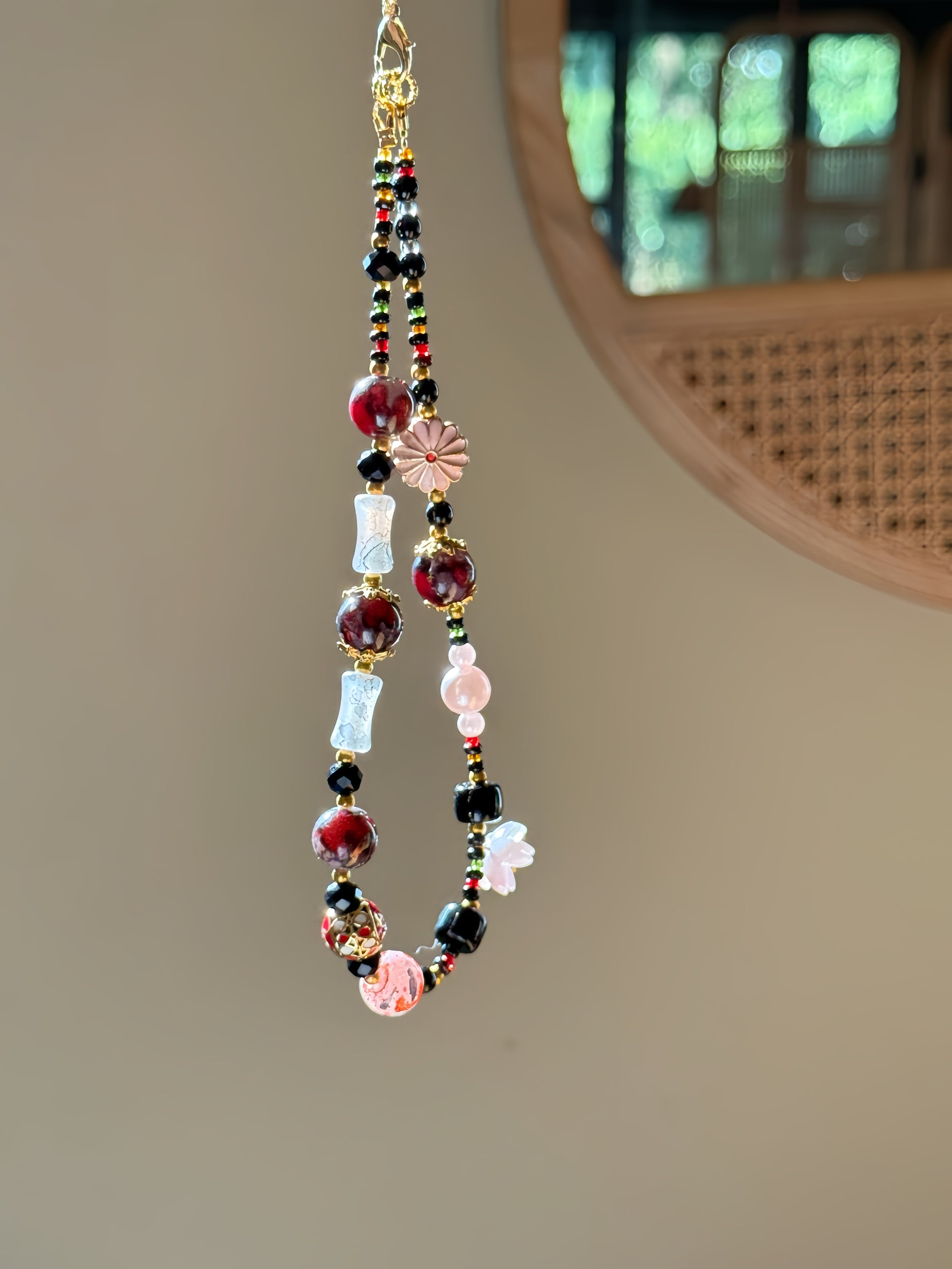 Step into a world of intricate beauty with this handcrafted phone charm inspired by the mystique and richness of Eastern aesthetics.