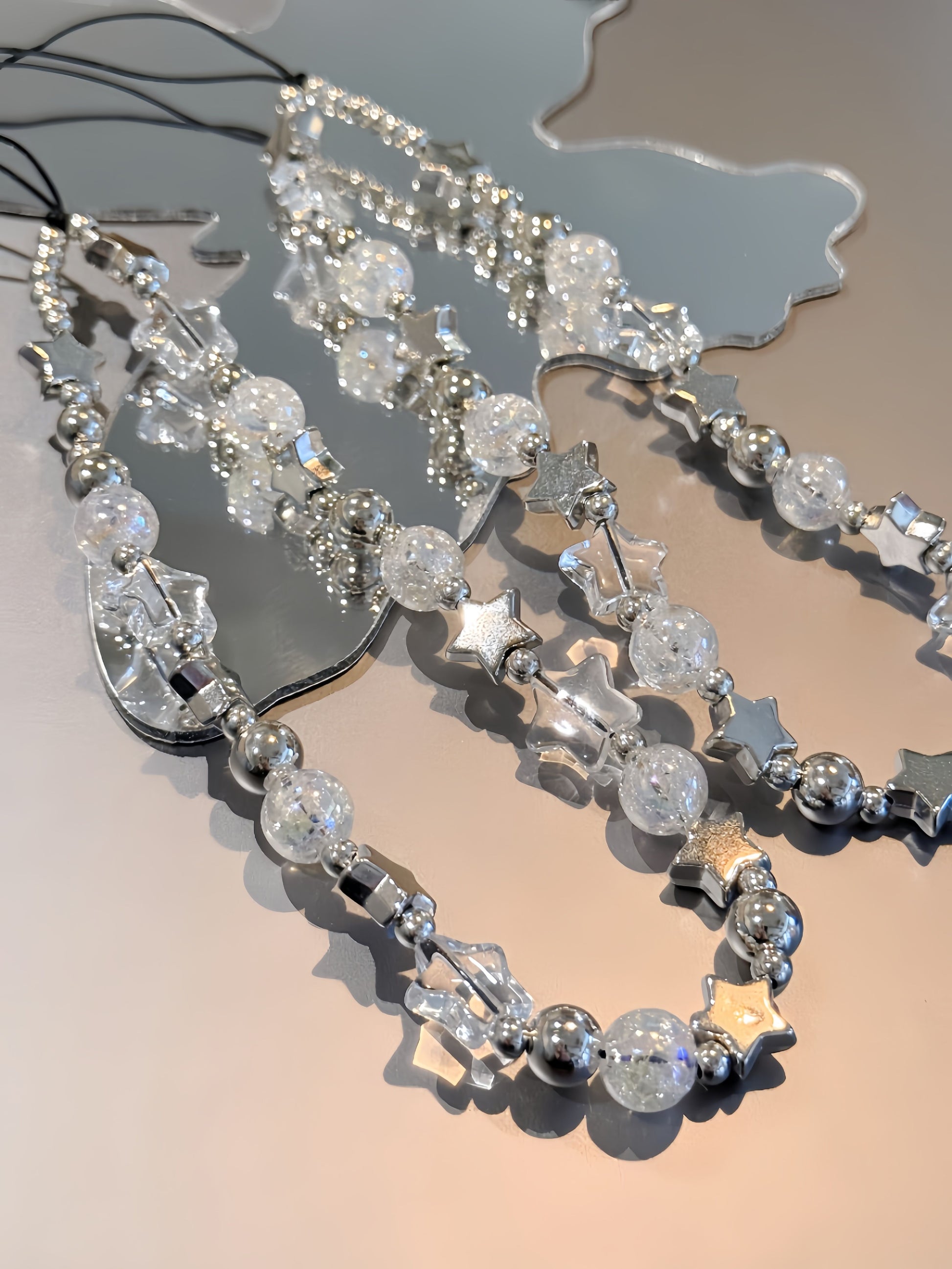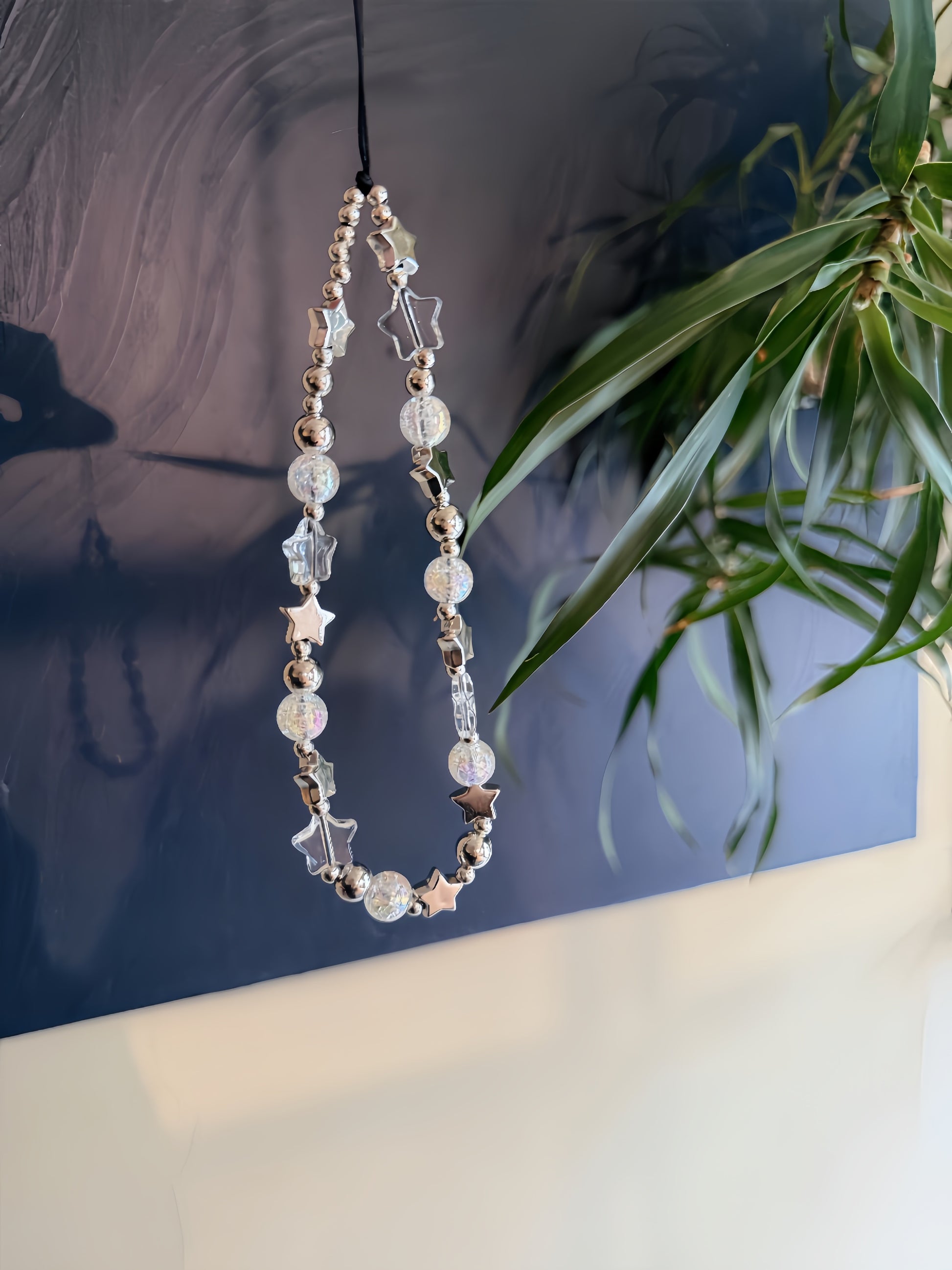 This stunning star phone charm captures the allure of a starry night, featuring delicate star-shaped decorations, crystal-clear beads, and silver accents. The light design offers an elegant, crystal phone charm vibe, perfect for adding a celestial, dreamy touch to your phone. Its lightweight structure ensures both style and comfort, making it an ideal phone accessory.