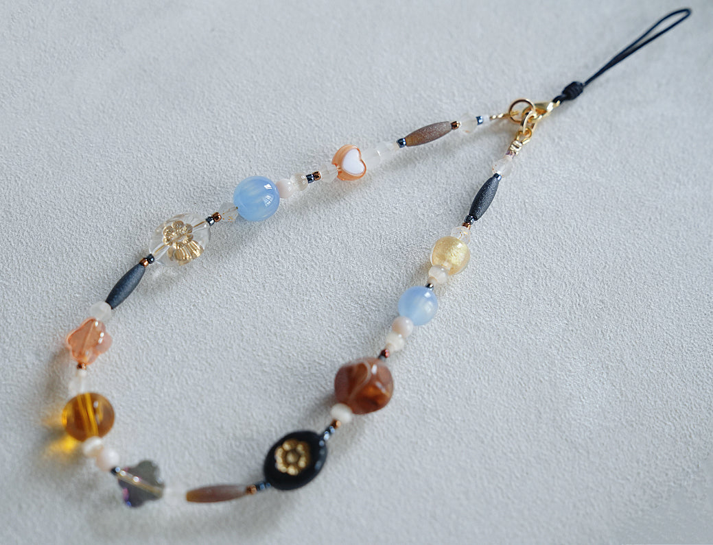 This vintage phone charm features a unique mix of natural stone beads, glass beads, and floral accents. Inspired by boho, cottagecore, and retro aesthetics, this phone charm blends warm earthy tones with delicate pastel hues, creating a whimsical and elegant look. Inspired by boho, cottagecore, and retro aesthetics, this phone charm blends warm earthy tones with delicate pastel hues, creating a whimsical and elegant look.